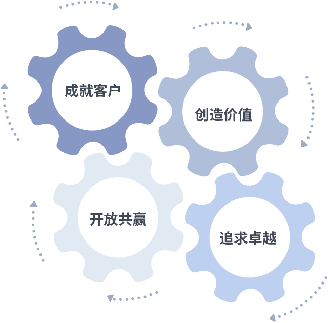 成就客户是一切决策的出发点,,,,创造价值是衡量所有工作的标准,,,追求卓越是瓦力游戏做事做人的态度,,,,开放共赢是瓦力游戏的格局也是最终的结果。。。。价值观的齿轮环环相扣,,推动着组织里的每个人不断向前。。